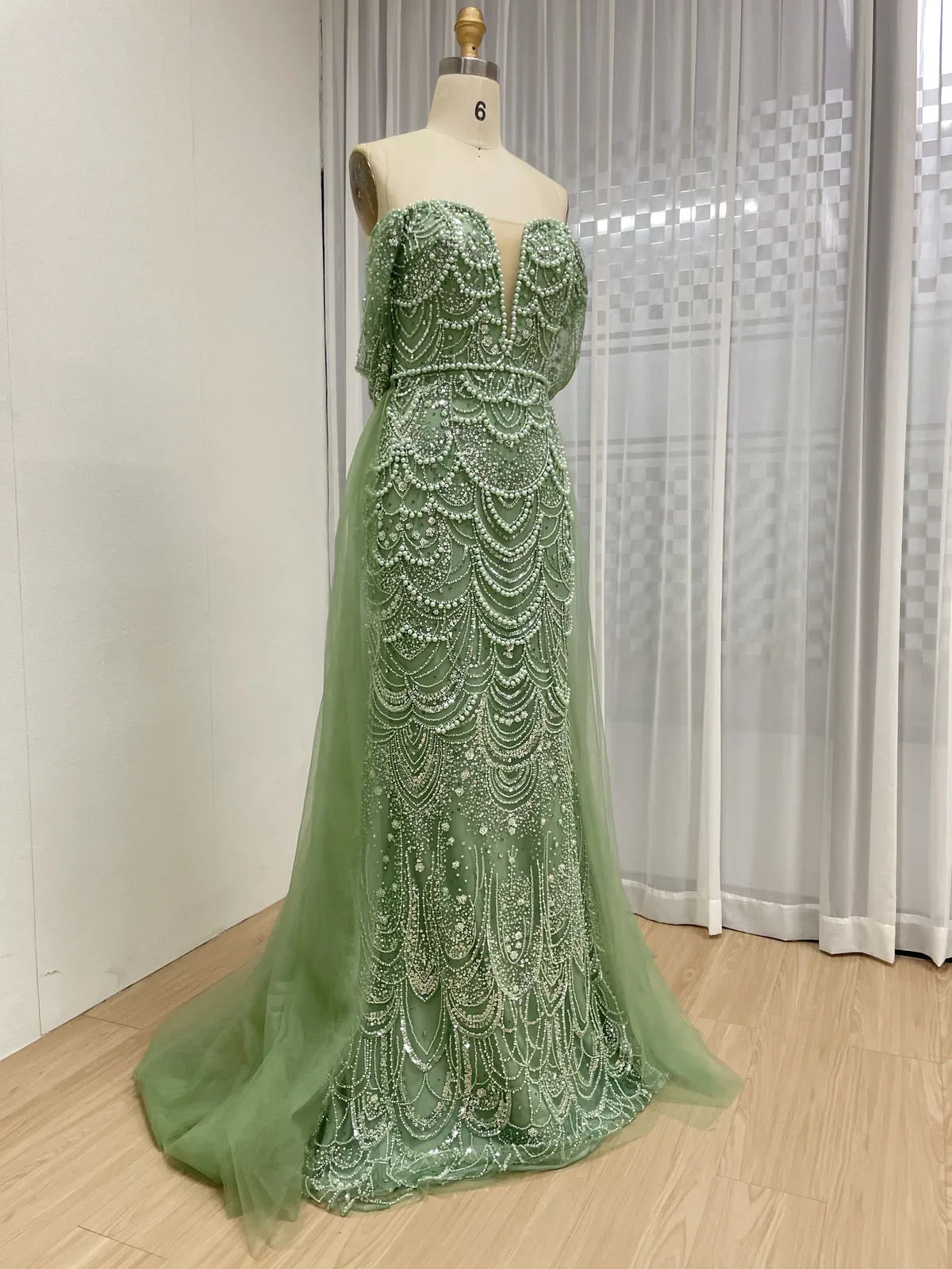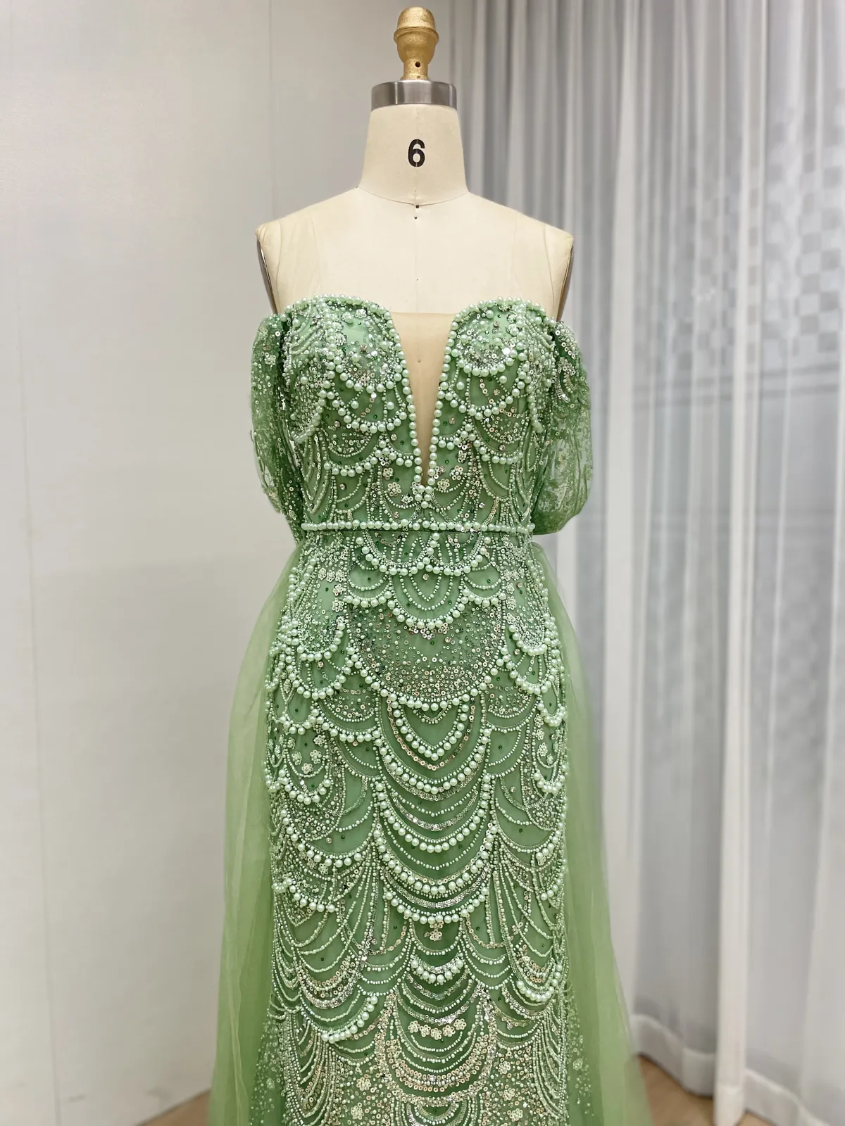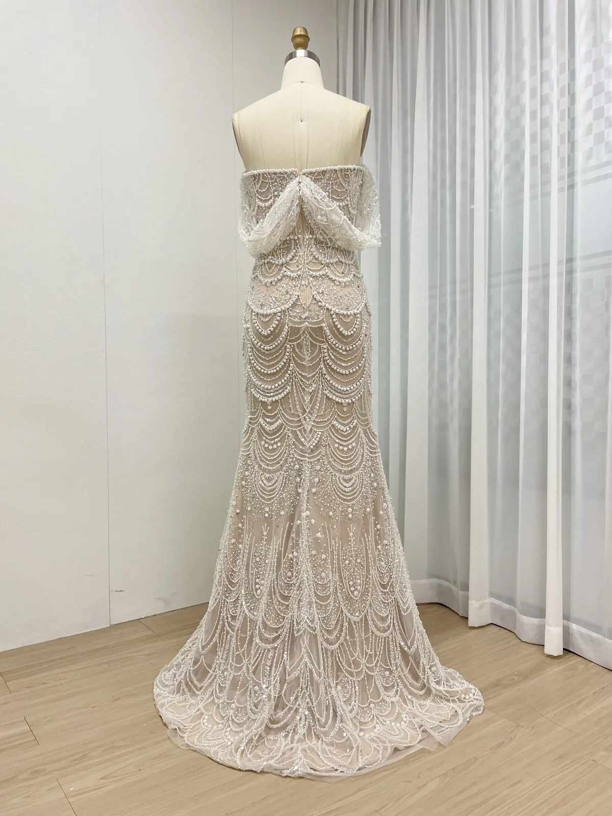 Beaded Mermaid Gown with Off-the-Shoulder Detail and Detachable Train MY30068-2