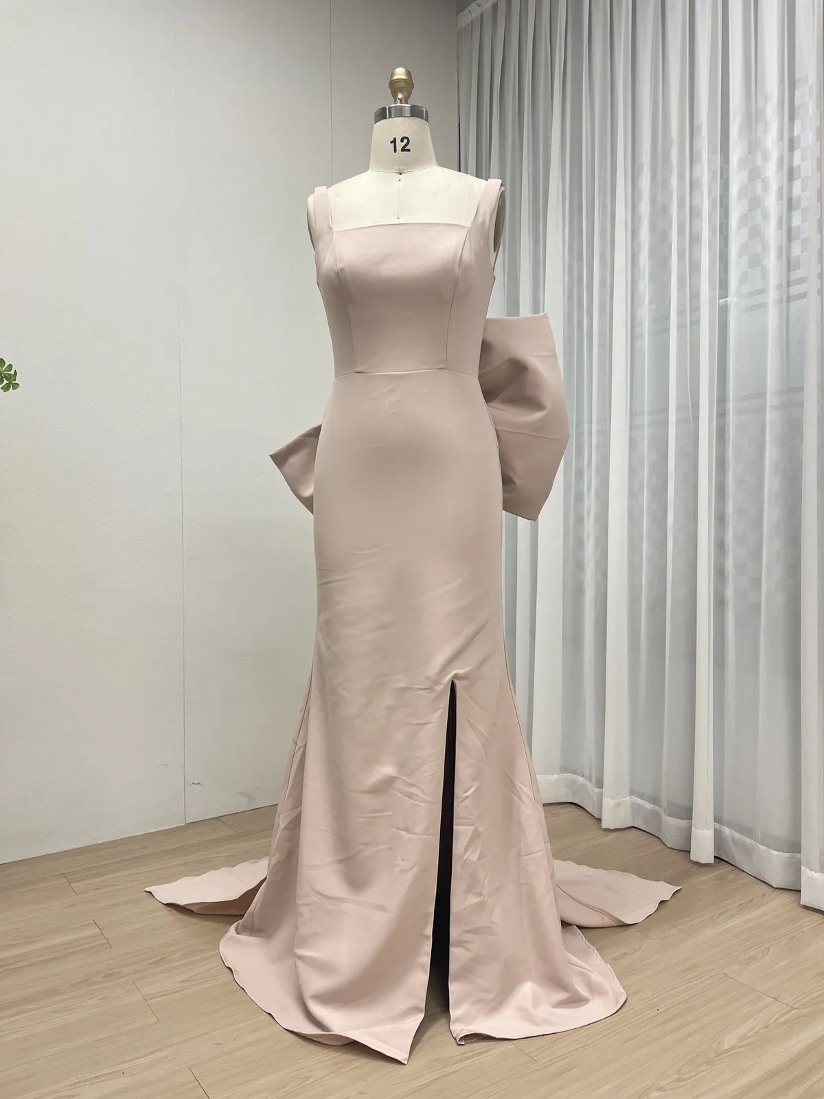 Make a sophisticated statement in this stunning satin mermaid gown. The sleek and minimalist design exudes modern elegance, while the luxurious satin fabric provides a smooth, flattering drape. The dress features a classic square neckline and a figure-hugging bodice that flows into a dramatic skirt with a daring side slit for a touch of allure and ease of movement.