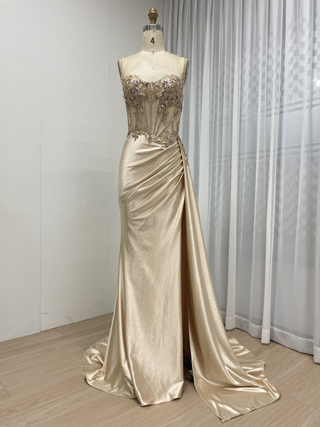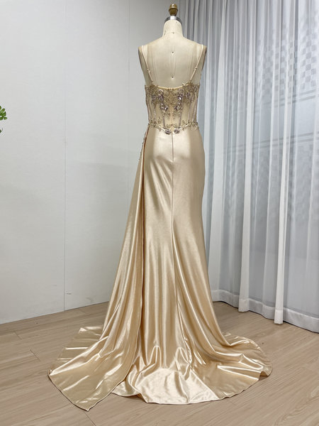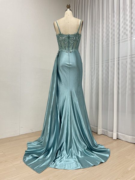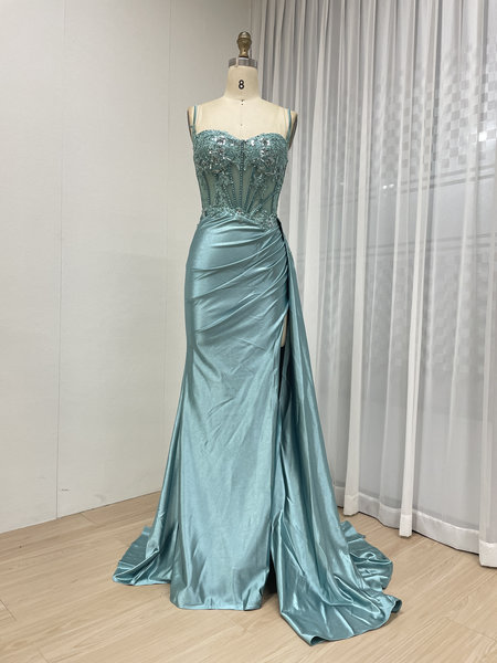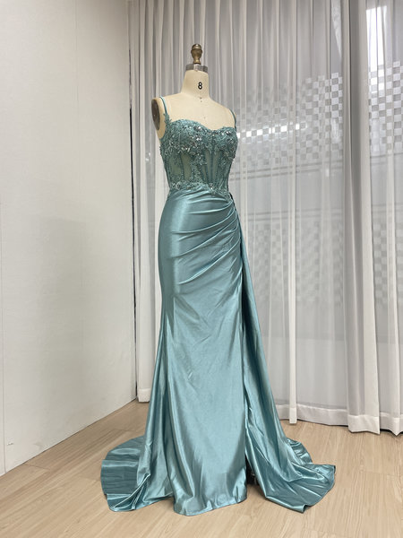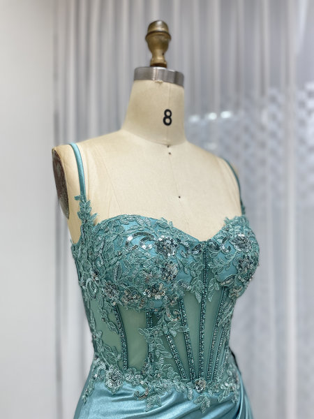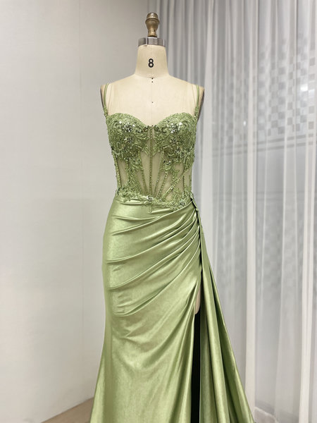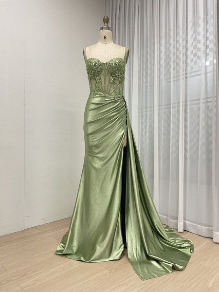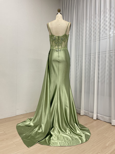 Elevate your evening wardrobe with this stunning green evening gown, designed to make a statement at any formal event. The elegant silhouette features a daring side slit that adds a touch of allure, while the rich green hue complements a variety of skin tones. Crafted from high-quality fabric, this gown drapes beautifully, ensuring you feel as fabulous as you look. Perfect for galas, weddings, or any special occasion, this gown is a must-have for those who appreciate sophistication and style.