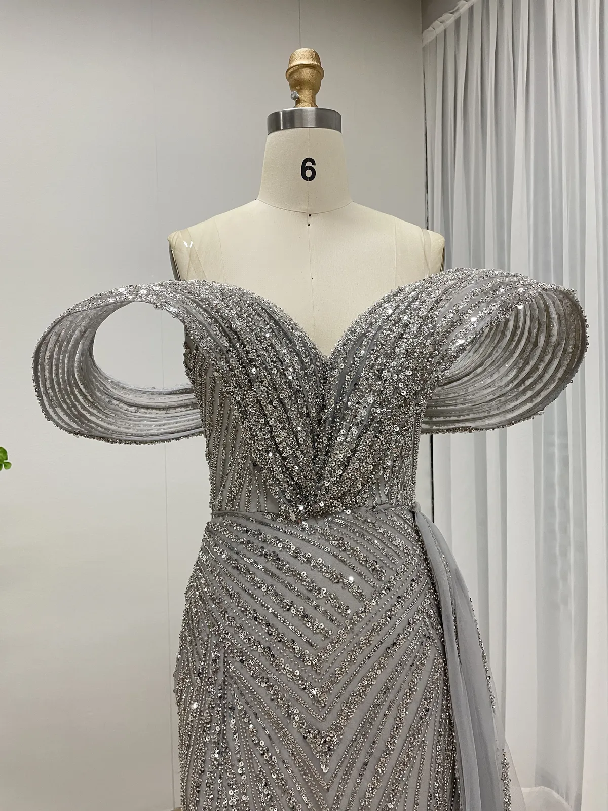 Glamorous Sequin Mermaid Gown with Draped Off-the-Shoulder Detail and Train MY30125
