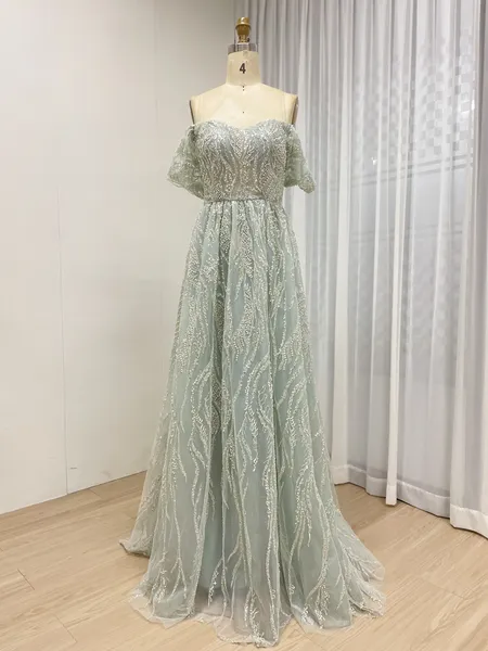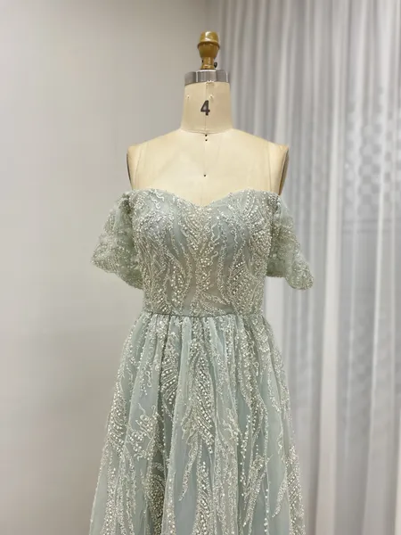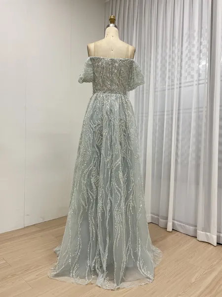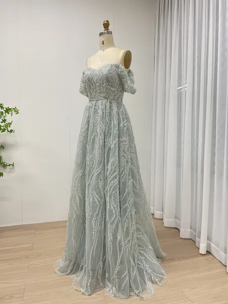 Mint Green Glitter A-Line Gown With Off-the-Shoulder Detail MY20005-2