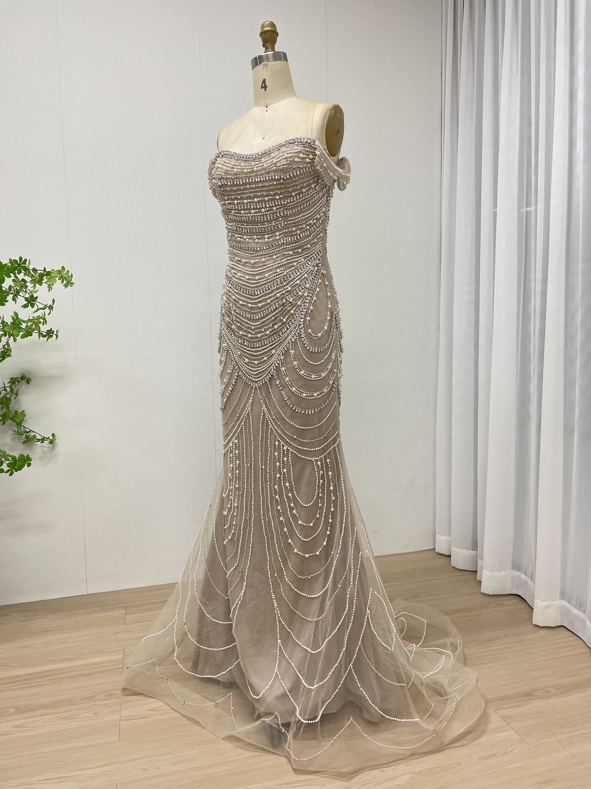 Off Shoulder Beaded Elegance Tulle Dress MB40209-2