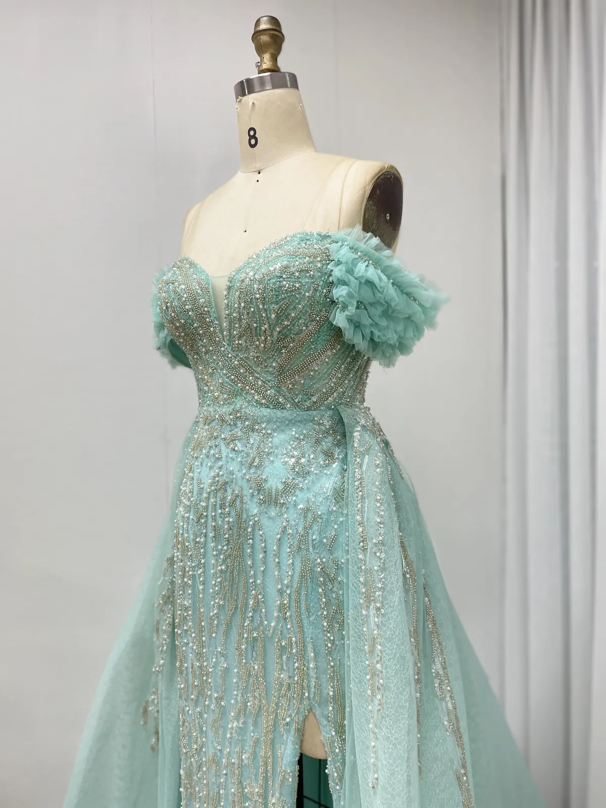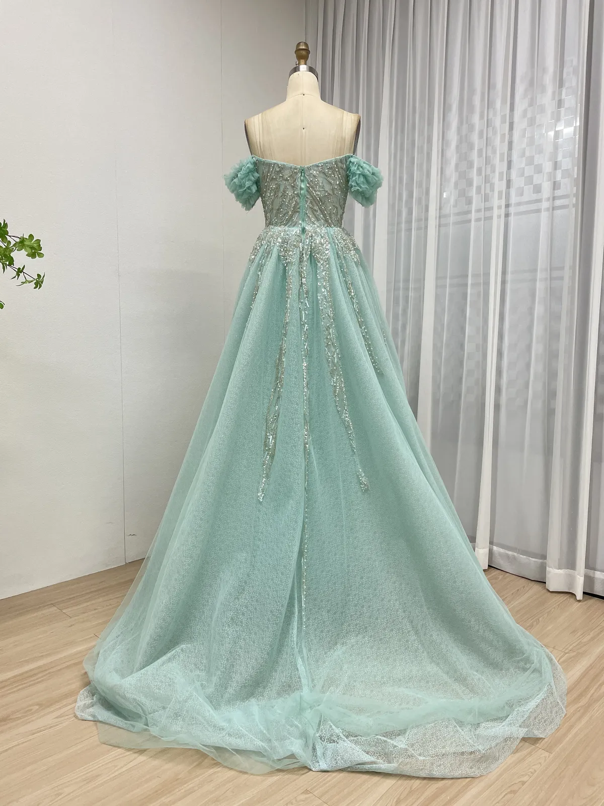 Elevate your wardrobe with our stunning green tulle dress adorned with exquisite beads. This enchanting piece combines the ethereal charm of soft tulle with the elegance of intricate beadwork, creating a captivating silhouette perfect for any special occasion. The vibrant green hue adds a touch of freshness, while the delicate layers of tulle provide a flattering fit that moves gracefully with you. Make a statement and turn heads in this unique dress that effortlessly blends sophistication and whimsy.
