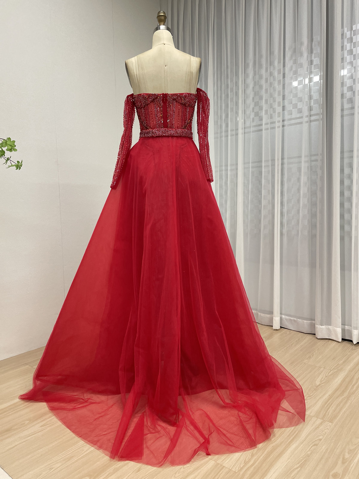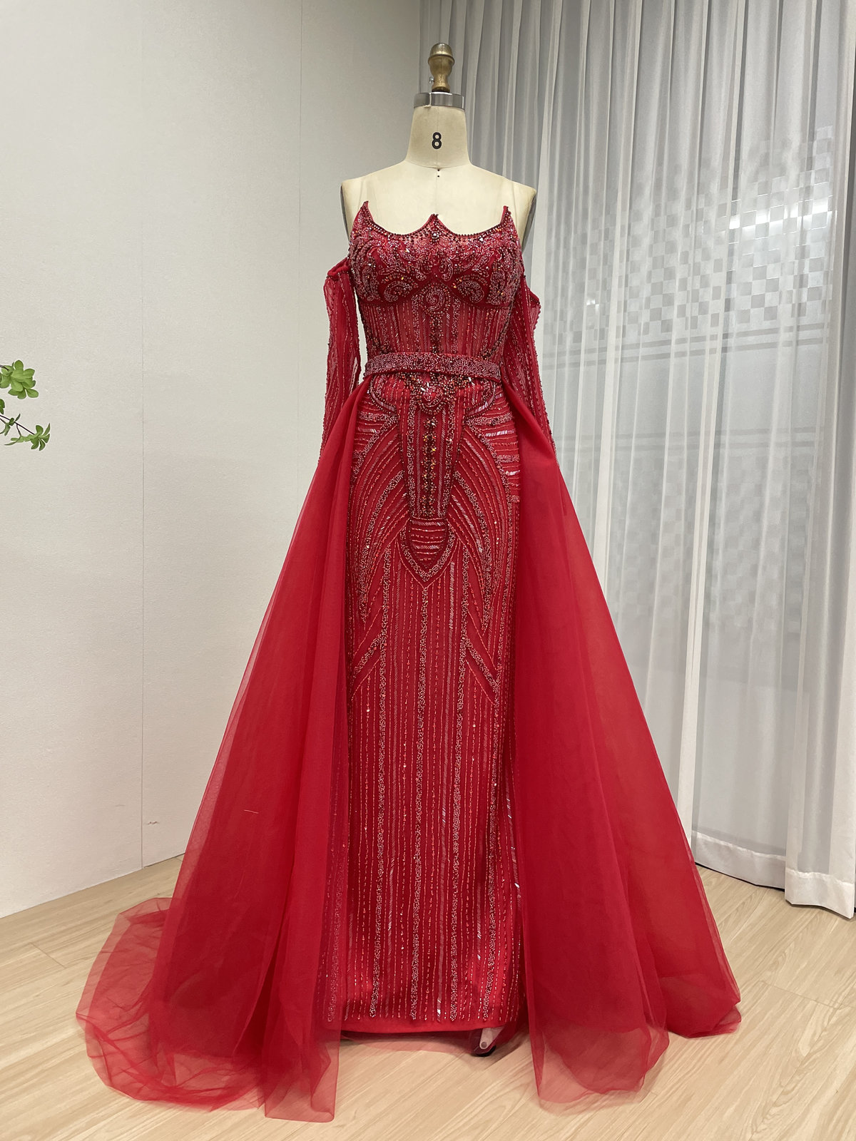 Red Dazzling Beaded Evening Gown With Removable Skirt MB40384-2