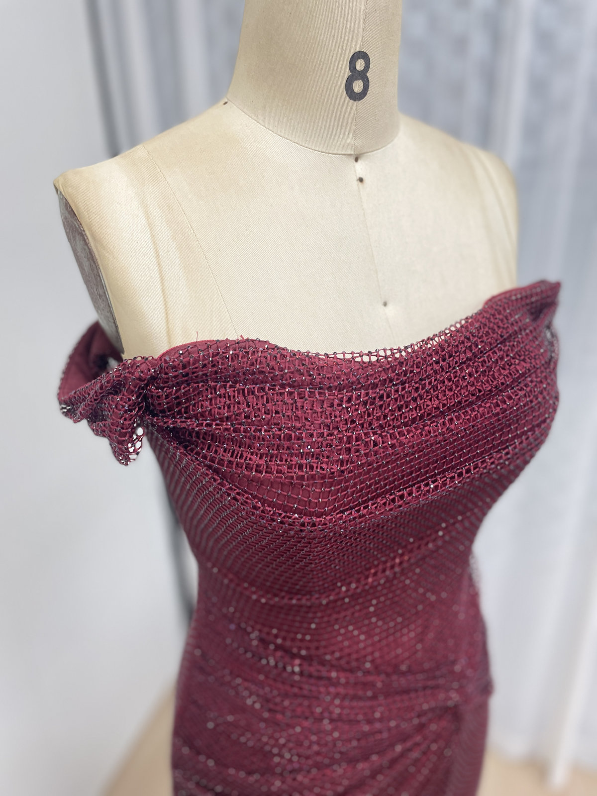 Elevate your evening wardrobe with this stunning green evening gown, elegantly displayed on a mannequin stand. Crafted from luxurious fabric, this gown features a flattering silhouette that gracefully drapes over your figure, ensuring you make a memorable entrance at any event. The rich green hue adds a touch of sophistication, while intricate detailing enhances its allure. Perfect for formal occasions, this gown promises to turn heads and leave a lasting impression. Embrace elegance and make this exquisite piece a staple in your collection.