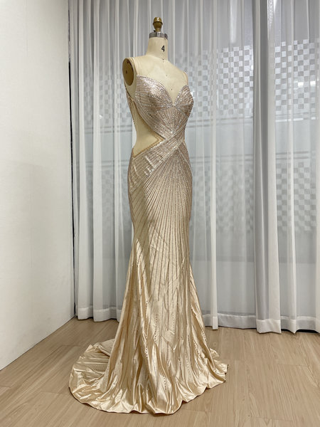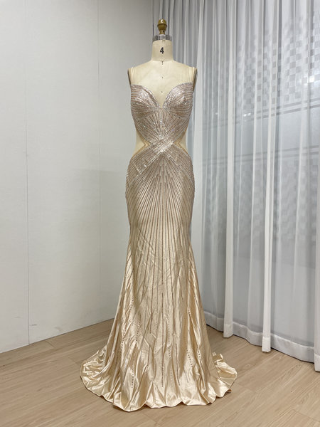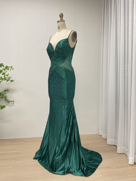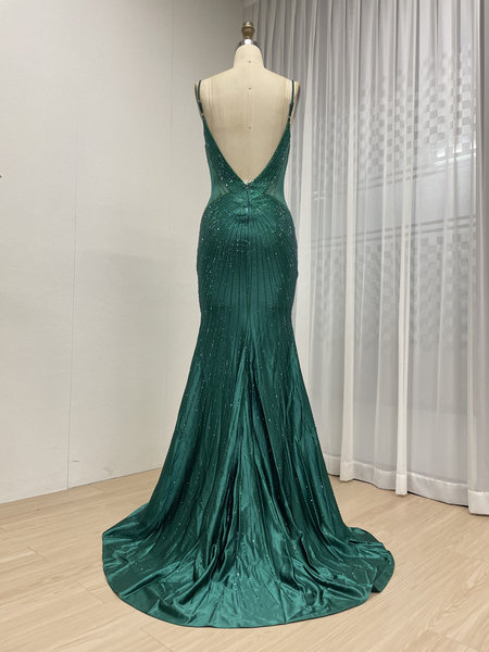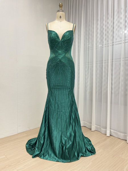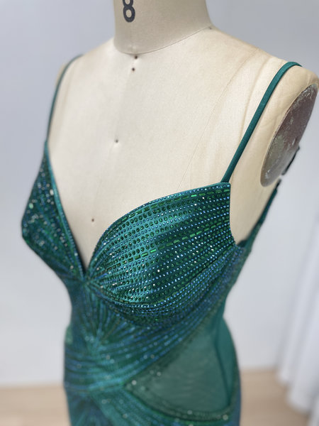 Sexy Green Goddess Evening Mermaid Gown MB40428