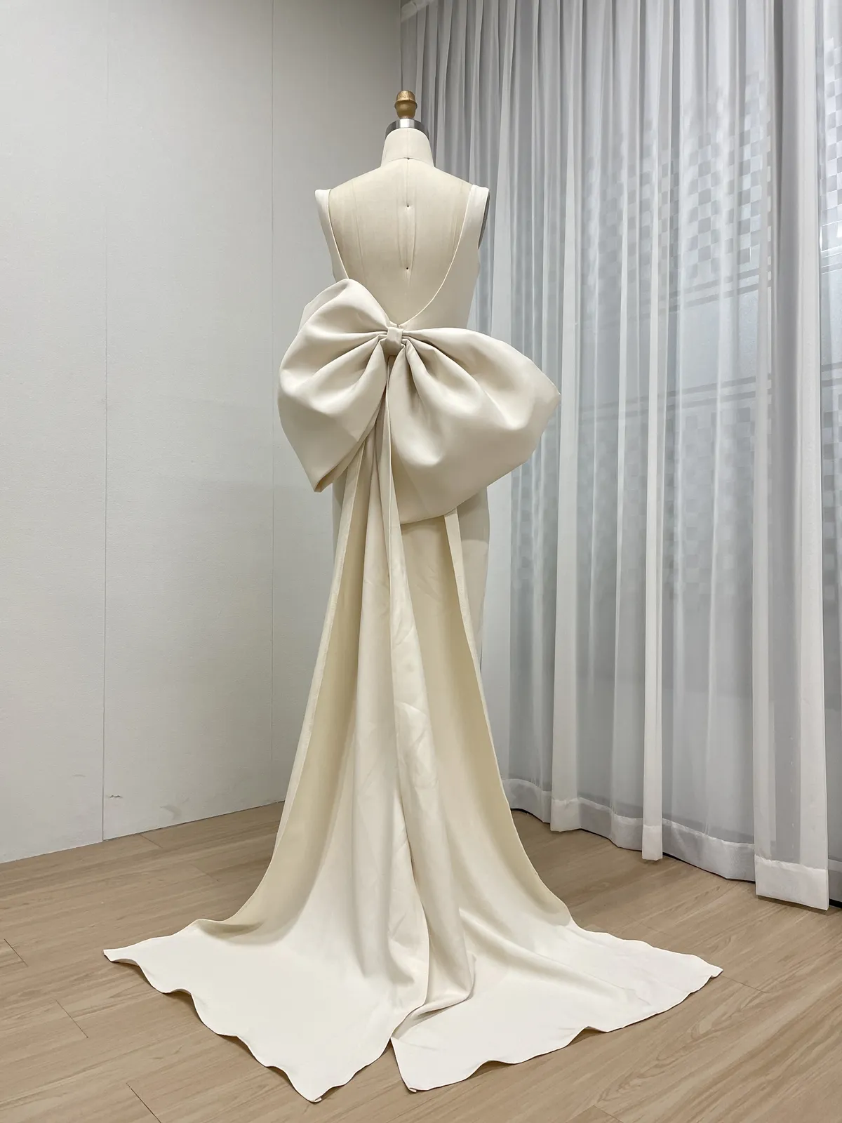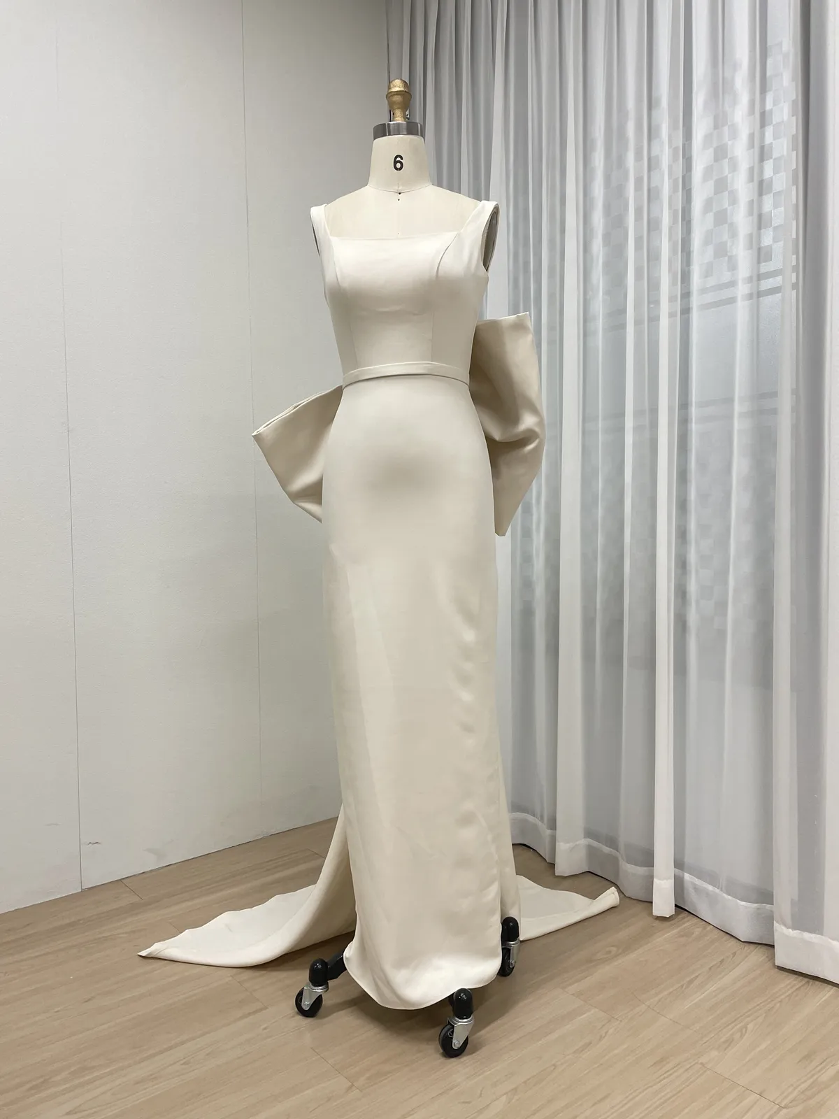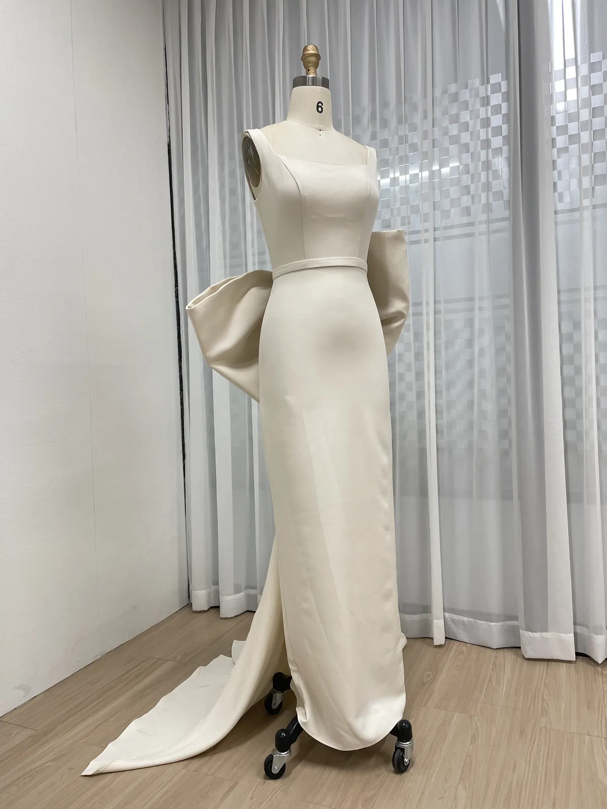 Sophisticated Satin Column Gown with Detachable Oversized Bow and Train MY30132-3