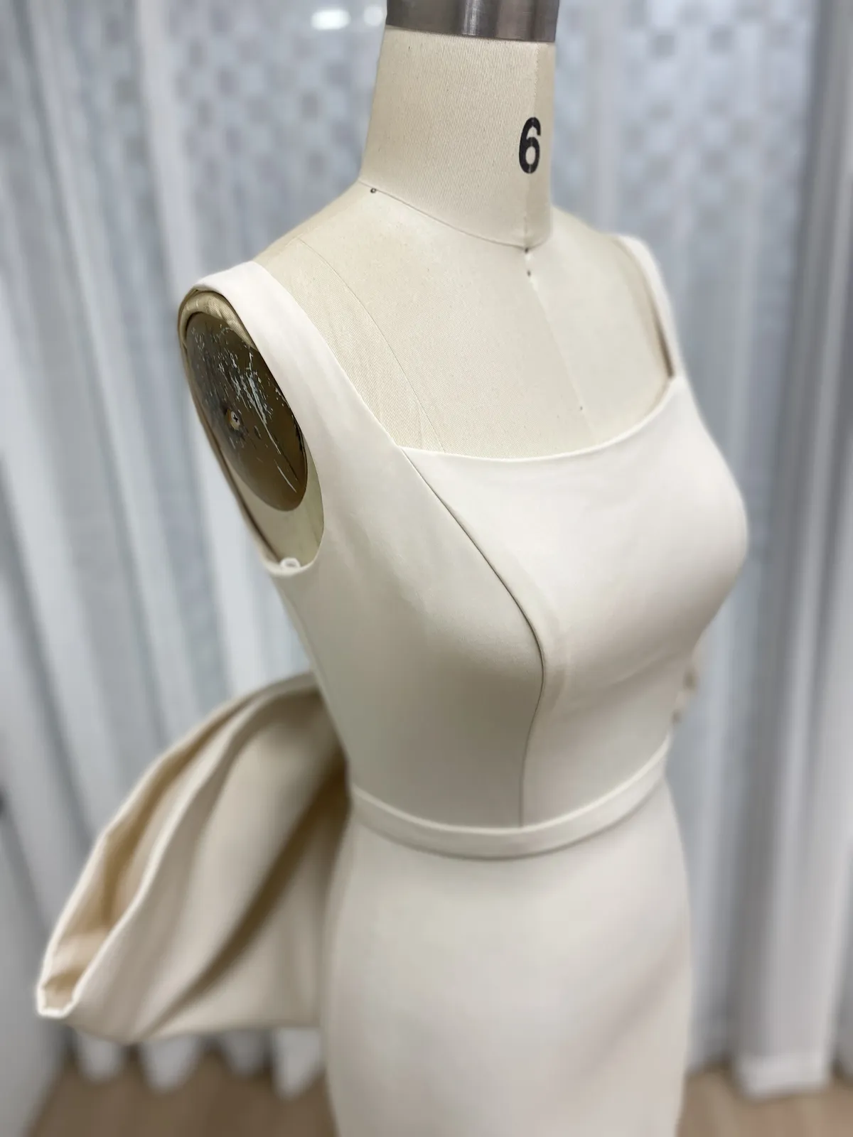 Adding a touch of drama and versatility, this gown comes with a detachable oversized bow. The bow can be easily attached at the back to create a spectacular focal point, cascading into a flowing train that adds a sense of grandeur and occasion. Without the bow, the dress transforms into a chic and understated column gown, perfect for a more minimalist aesthetic. This 2-in-1 design makes it ideal for various formal events, allowing you to customize your look to suit the occasion.