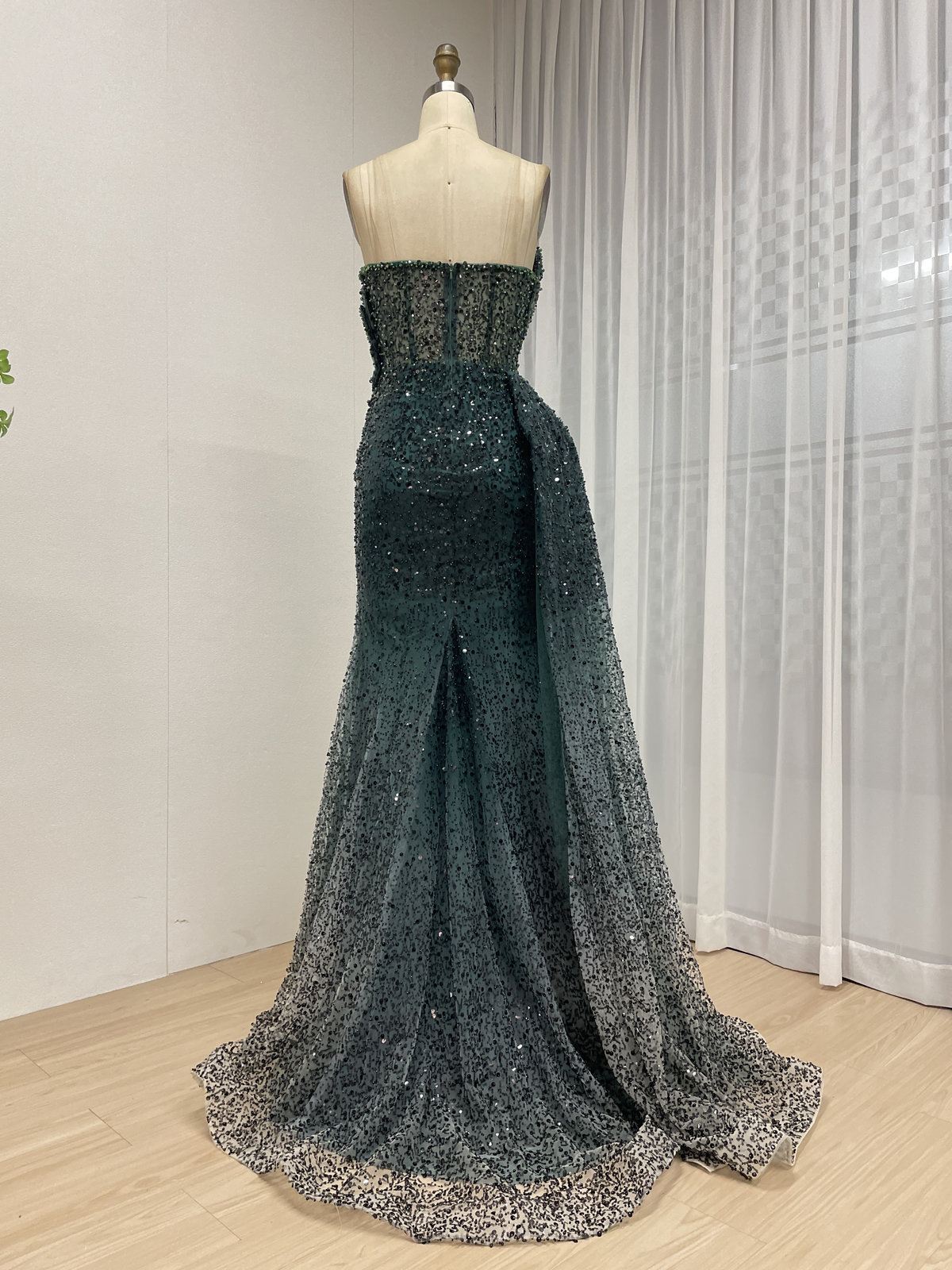 Stylish Ruched Design Evening Gown With High Split And Side Skirt MY30184